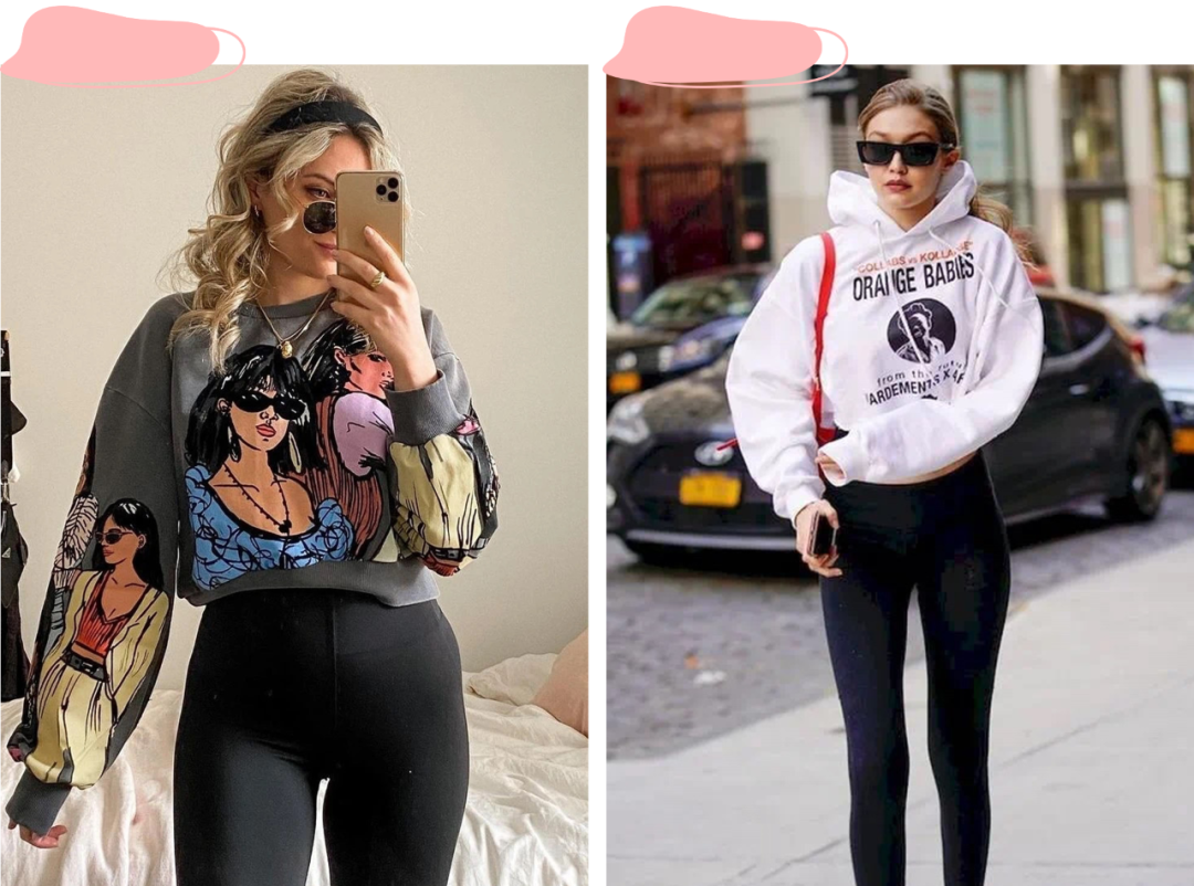 除了CROPTOP卫衣之外,更建议大家在选择卫衣尺码的时候多留一些空间,穿着效果不宜太贴身,不然很容易显土暴露身材缺陷。