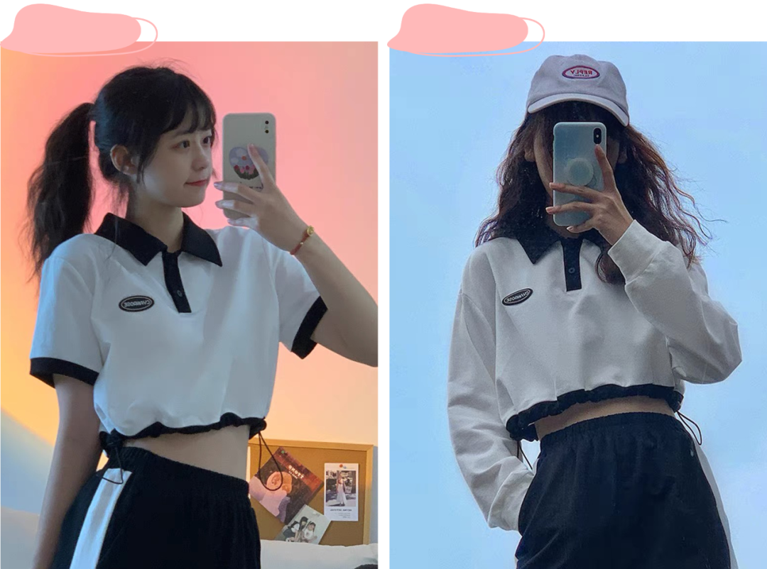 相对比普通的卫衣,CROPTOP卫衣的长度基本都在肚脐位置甚至更短,就是卫衣材质的短上衣。