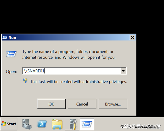 运行后,我们模拟一个用户键入错误的SMB服务器名称,比如使用SNARE01而不是SHARE01。