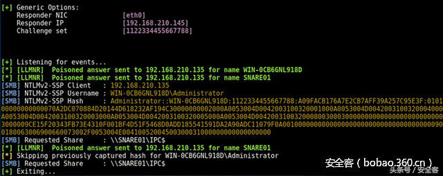 在客户端广播不正确的服务器名称的几秒钟时间内,就完成了对这个广播请求的应答,并将NTLMv2哈希值写入了硬盘。