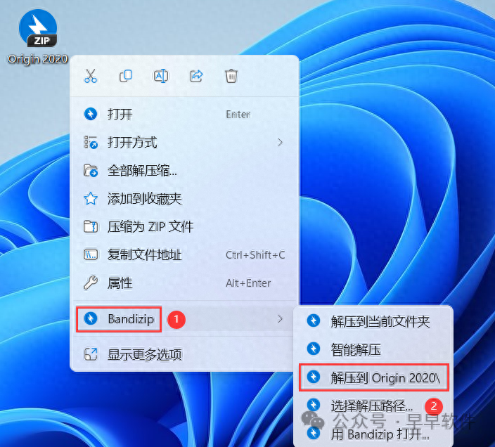 1、下载Origin2020软件安装包到电脑上,右键选择【解压到Origin2020\】