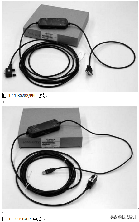 S7-200常用的编程设备是RS232/PPI电缆(订货号6ES7901-3CB30-0XA0,如图1-11)或USB/PPI电缆(订货号6ES7901-3DB30-0XA0,如图1-12)。