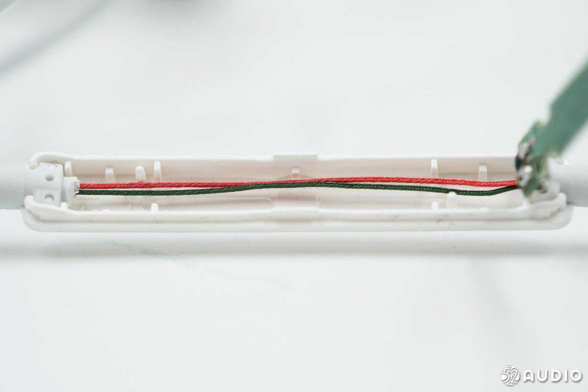 导线藏在PCB下面,有红绿两根。