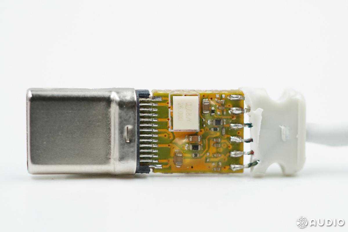 接下来拆解USB-C插头,这一面是白色晶振和一些电容,接6跟导线出去。