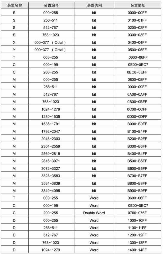 PLC的内部装置modbus地址