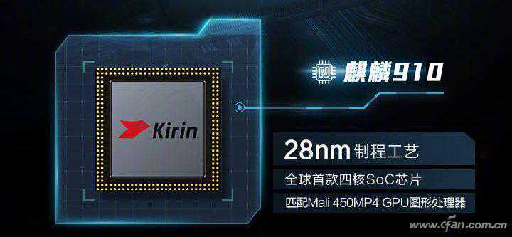 2013年底,华为正式发布了麒麟910,这颗芯片采用了台积电28nmHPM工艺,解决了K3V2的发热和高功耗隐忧,ARM公版Cortex-A9CPU和Mali-450MP4GPU的组合,在性能和兼容性方面的表现也不赖。最关键的是,麒麟910首次集成了自家的巴龙710基带,将华为在通信领域的看家本领展现了出来,并也因此成为了全球首颗四核“SoC”。