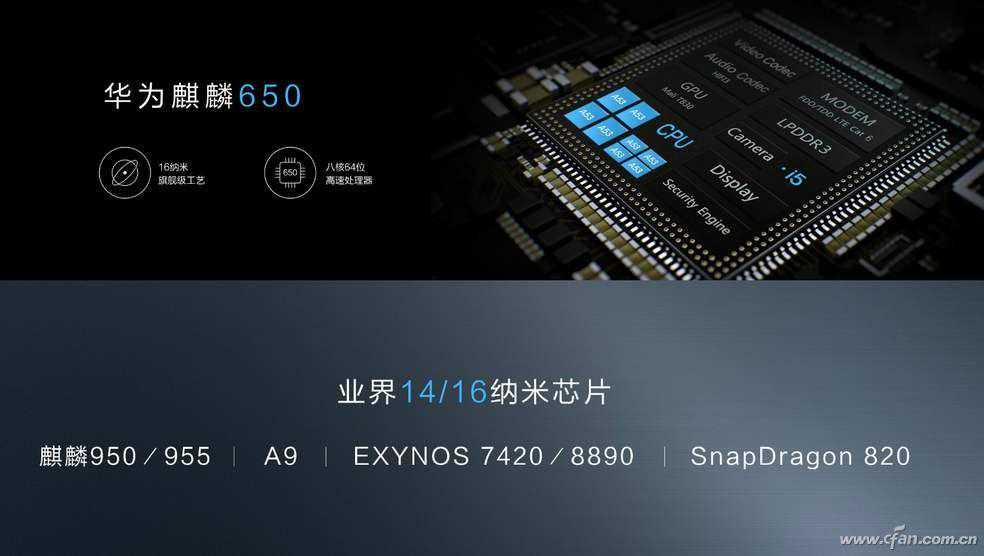 2016年5月,海思推出了麒麟620的升级版——麒麟650,它采用16nm制程工艺以及双丛集的Cortex-A53八核架构,集成Mali-T830MP2GPU,并逐渐衍生出了麒麟655、麒麟658和麒麟659,其中麒麟659的最高主频达到了2.36GHz。该系列芯片上市初期的竞争力还是蛮不错的,号称同期市售唯一的千元级16nm制程移动处理器,但随着高通祭出骁龙660这颗“神U”之后,其竞争力便逐渐走向了下坡路。