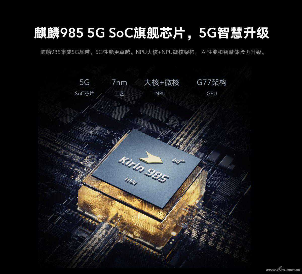 随麒麟820一同问世的还有麒麟985,我们可以将其视为麒麟9905G的缩水版,它降低了主频、改用Mali-G77MC8GPU、NPU规模变小。这颗芯片的性能与天玑1000L相似,仅比麒麟820和天玑820强点有限,竞争力一般。因此,麒麟985仅被荣耀30和华为nova75G等少数手机列装,很多消费者更青睐价位相似但却武装麒麟990系列的同门兄弟。