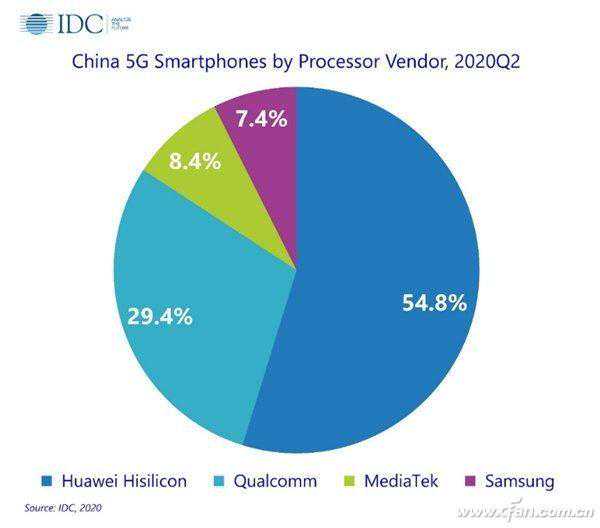 在2020年,IDC公布的第二季度中国智能手机市场跟踪报告显示,华为海思芯片曾一度占据54.8%的市场份额。如果没有制裁,麒麟在今天的成绩简直无法想象,苹果iPhone也不会是万元级别顶级手机的唯一之选。