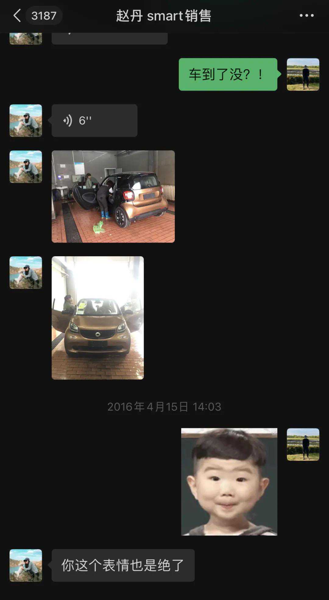 (图:16年4月15日,销售小姐姐告诉我车到了,可把我高兴坏了)