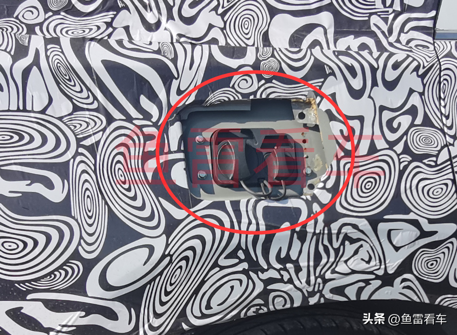 原先的油箱加注口位置,改成了充电接口,快慢充口非常清晰了,这与前期的白车身判断完全吻合了。