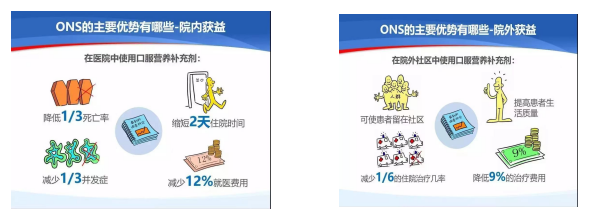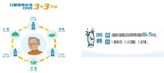 Tips:口服营养补充(OralNutritionalSupplements,ONS),是以增加口服营养摄入为目的,将能够提供多种宏量营养素和微量营养素的营养制剂经口服用。ONS具有营养均衡,配方科学、安全有效、方便快捷等多种优点。