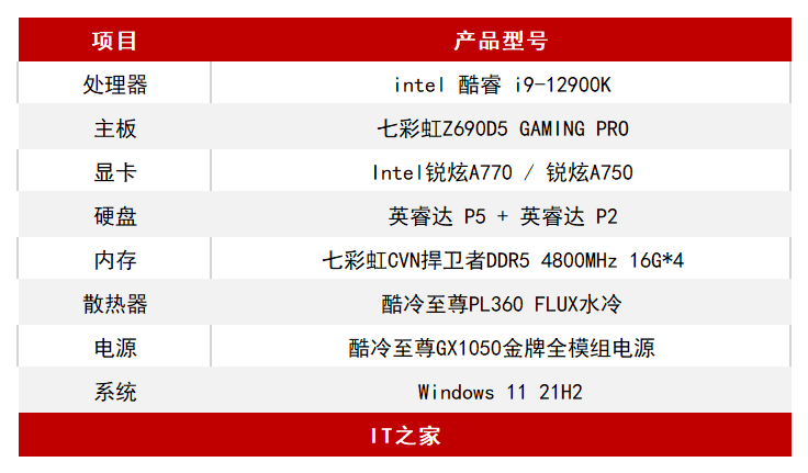 IT之家提前收到了Intel锐炫A77016G和A7508G这两张显卡。在本文中我们就来进行详细的测试,看看Intel这波大举进攻独立显卡市场的成效如何。以下是测试平台: