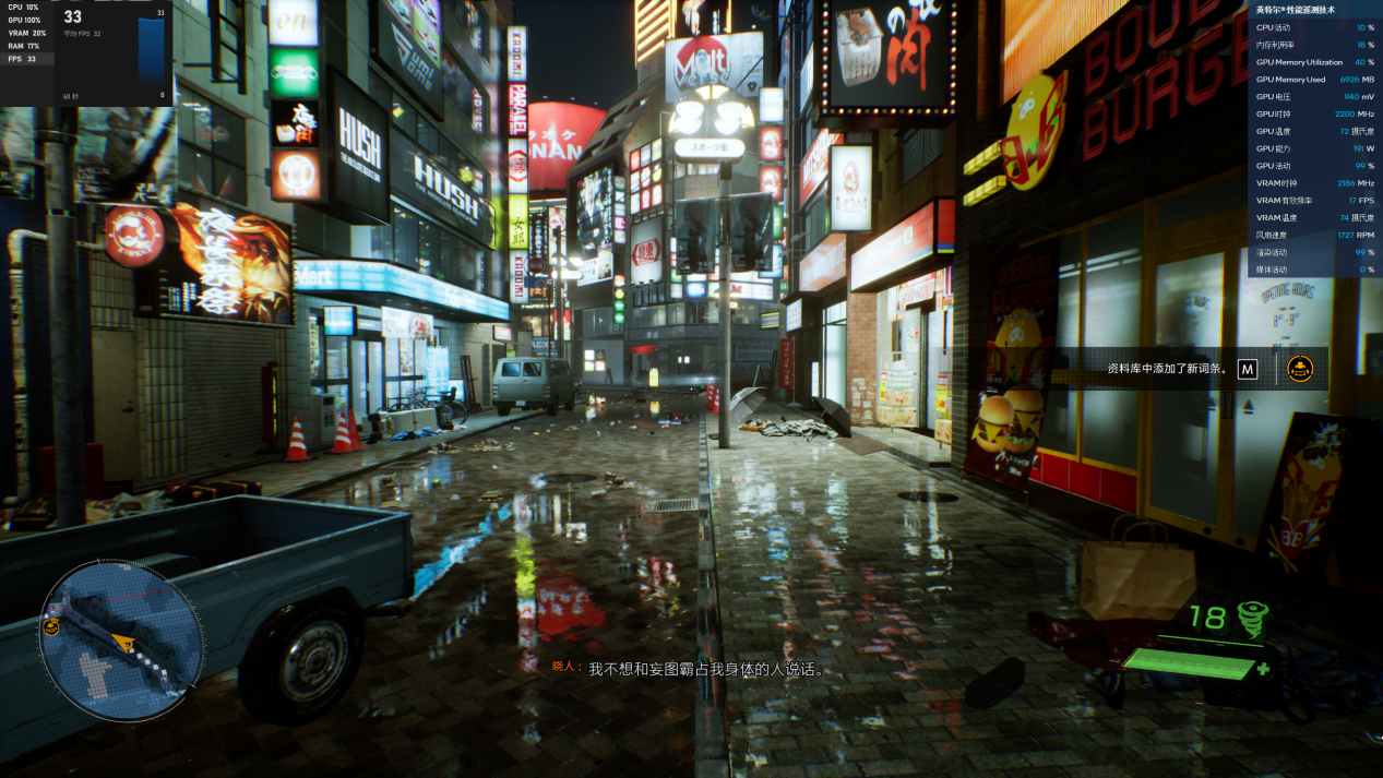 首先是一款画质爆炸的捉鬼游戏《幽灵线:东京》,这款游戏堪称硬件杀手,2K分辨率下开启光追后只有30多帧,但我们可以用XeSS技术,以更低的分辨率渲染,再放大到高分辨率,实现帧数的翻倍。