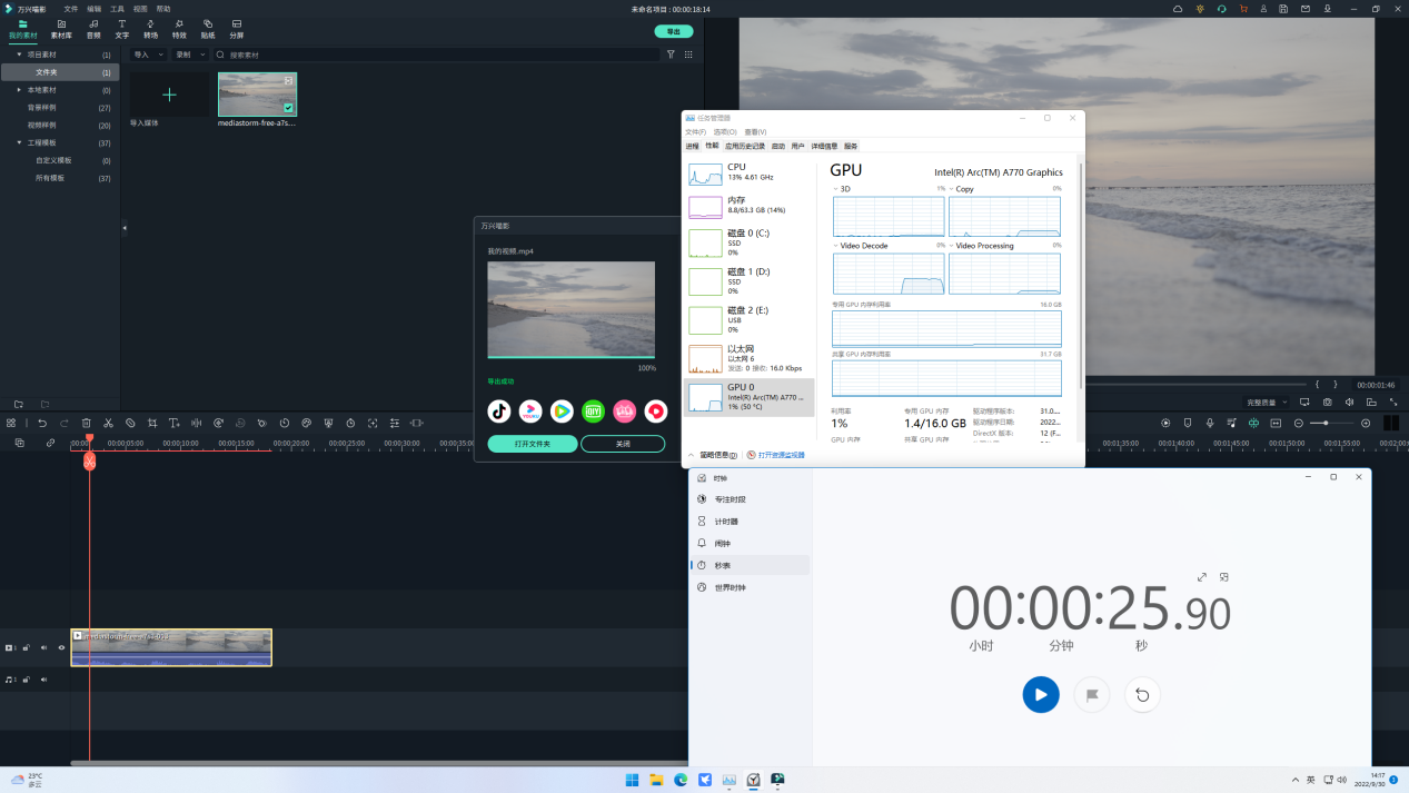 通过测试可以看到,在进行AV1编码时,A770都能够提供更加高效的GPU加速支持,这样就可以大大缩短编码时间,为内容创作者们带来效率上的显著提升。