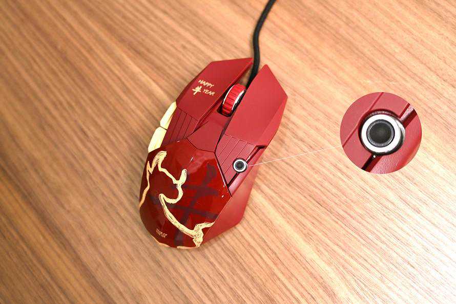 我们可以注意到,达尔优A970牛年特别版别出心裁的在右侧区域设置一个银色的圆形按键,这个按键是DPI调节按键,达尔优之所以选择将这个按键放置在这里而不是选择居中,是考虑到了误触的问题。相信很多网友都和笔者有同样的体验,在打游戏时不小心按到鼠标DPI调节按键,鼠标一下子变得很快或者很慢,十分影响游戏操作。
