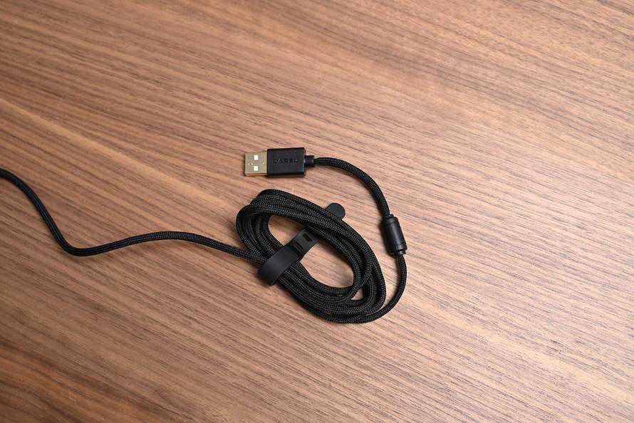 线材方面,达尔优A970牛年特别版采用了一条较为柔软的伞绳线,外部为编织线材,防弯折,防损坏,可以有效保证线材的寿命。同时,在线材USB接口附近有消磁环设计,让玩家无需担心磁性干扰。