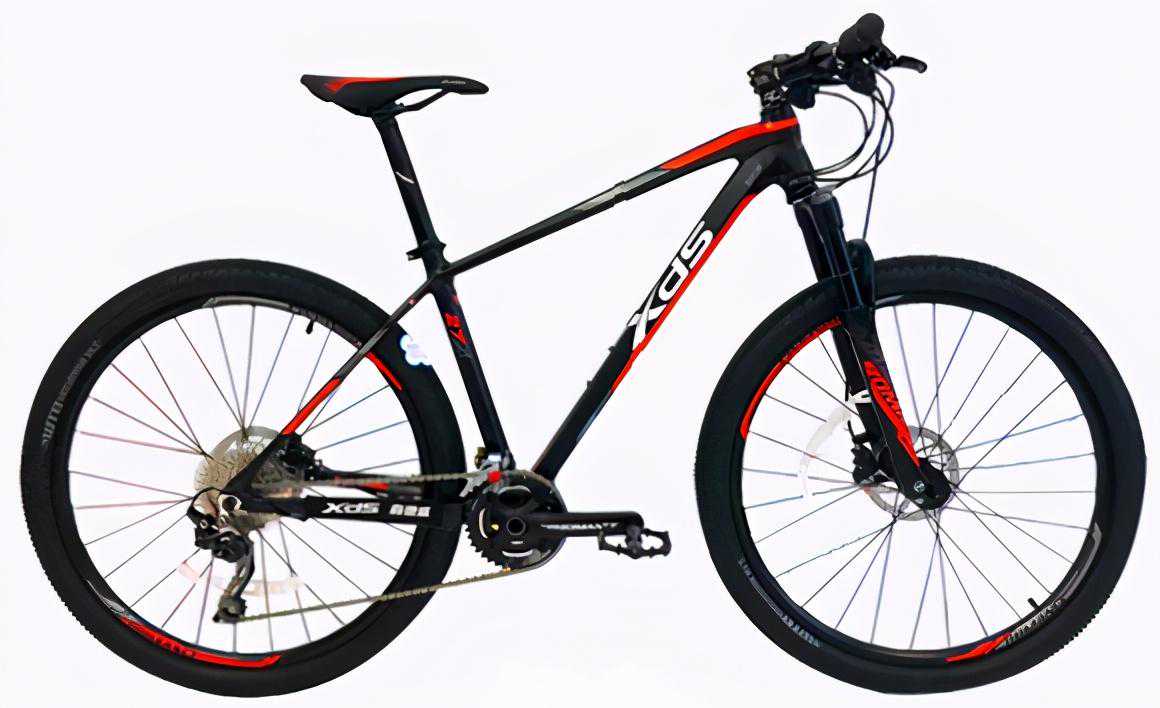 碳纤维车架,整车重12kg,比传奇770还重点(笑哭)。轮胎27.5寸/29寸,禧玛诺M6000变速器,浩盟中空牙盘,彦豪油碟,可锁气压前叉。总体来说,这款山地车的优势就在于碳纤维的车架。