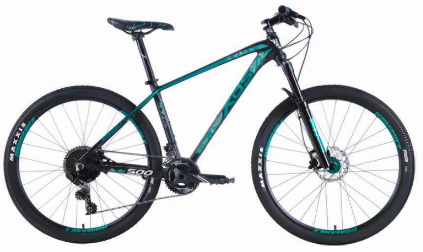 下面看看配置。这款车提供了多款轮径可以选择,26/27.5/29轮径的都有,27速。肩控前叉+禧玛诺M2000变速器+彦豪油碟+浩盟中空牙盘。