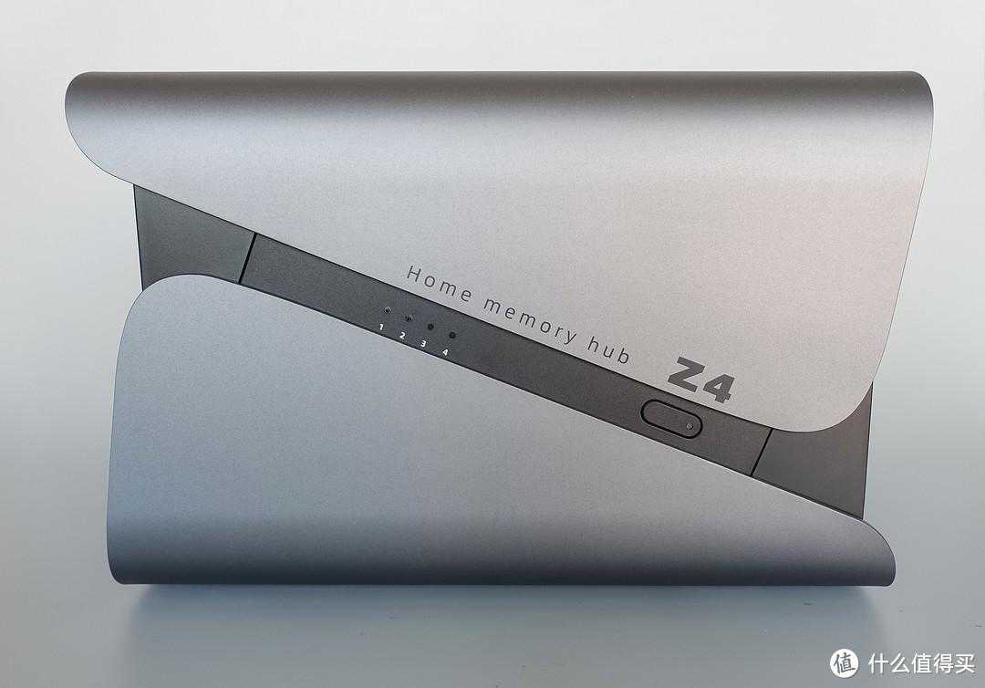 从另一侧角度来看,更像是一个Z形了。讲道理我个人挺喜欢这个炫酷的造型,感觉比起方方正正的传统NAS来说,科技范儿更足。