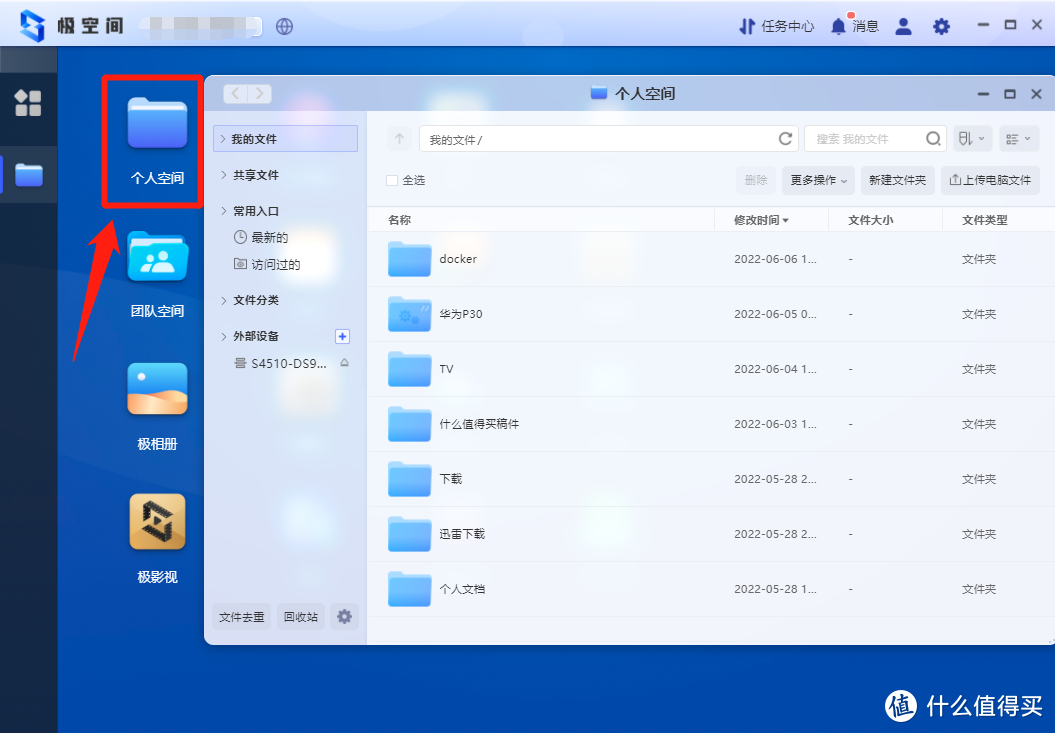文件管理NAS的核心功能是数据存储,所以评价一台NAS做得好不好,文件系统的相关功能是重中之重。ZOS中,对于本地数据文件的管理,是通过“个人空间”这个套件来实现的。