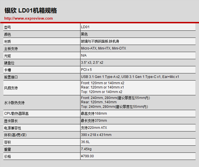 银欣LD01机箱规格