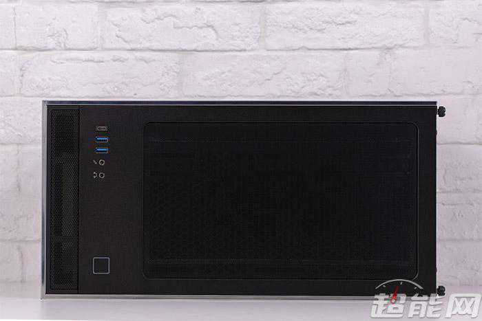 机箱前面板底部有个银欣的Logo,由于用黑色玻璃的原因,这个Logo不太明显