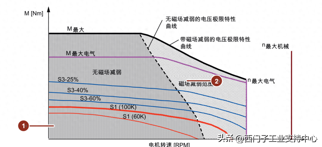 在选用西门子伺服电机时,为了能够满足实际工况的需要,需要考虑所选电机的扭矩转速特性曲线、电压极限特性曲线。本文为大家进行相关内容的介绍。