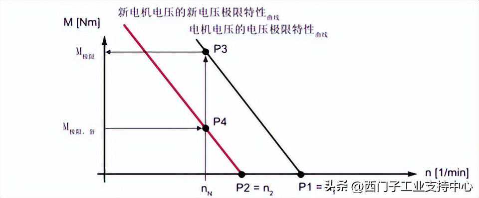 当变频器输出电压有所不同时,必须相应地平移电压极限特性曲线。