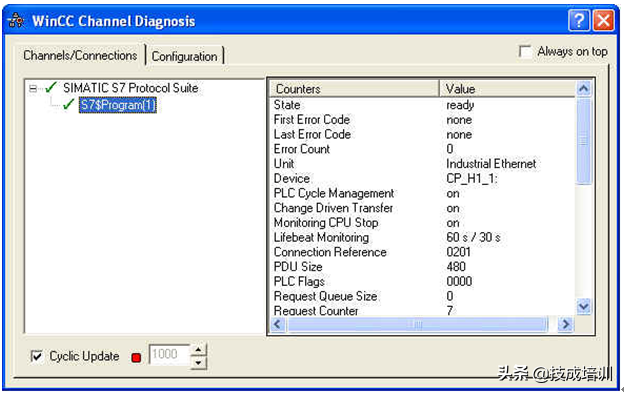 18.项目激活后,也可以打开ChannelDiagnosis来诊断连接状态,绿勾状态表示连接正常,如图1-59。