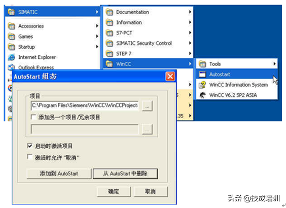 19a.项目完成后,可在Autostart中配置开机自动运行WinCC项目,在“项目”中选择需要开机运行的WinCC项目所在路径,然后激活“启动时激活项目”,如图1-60。