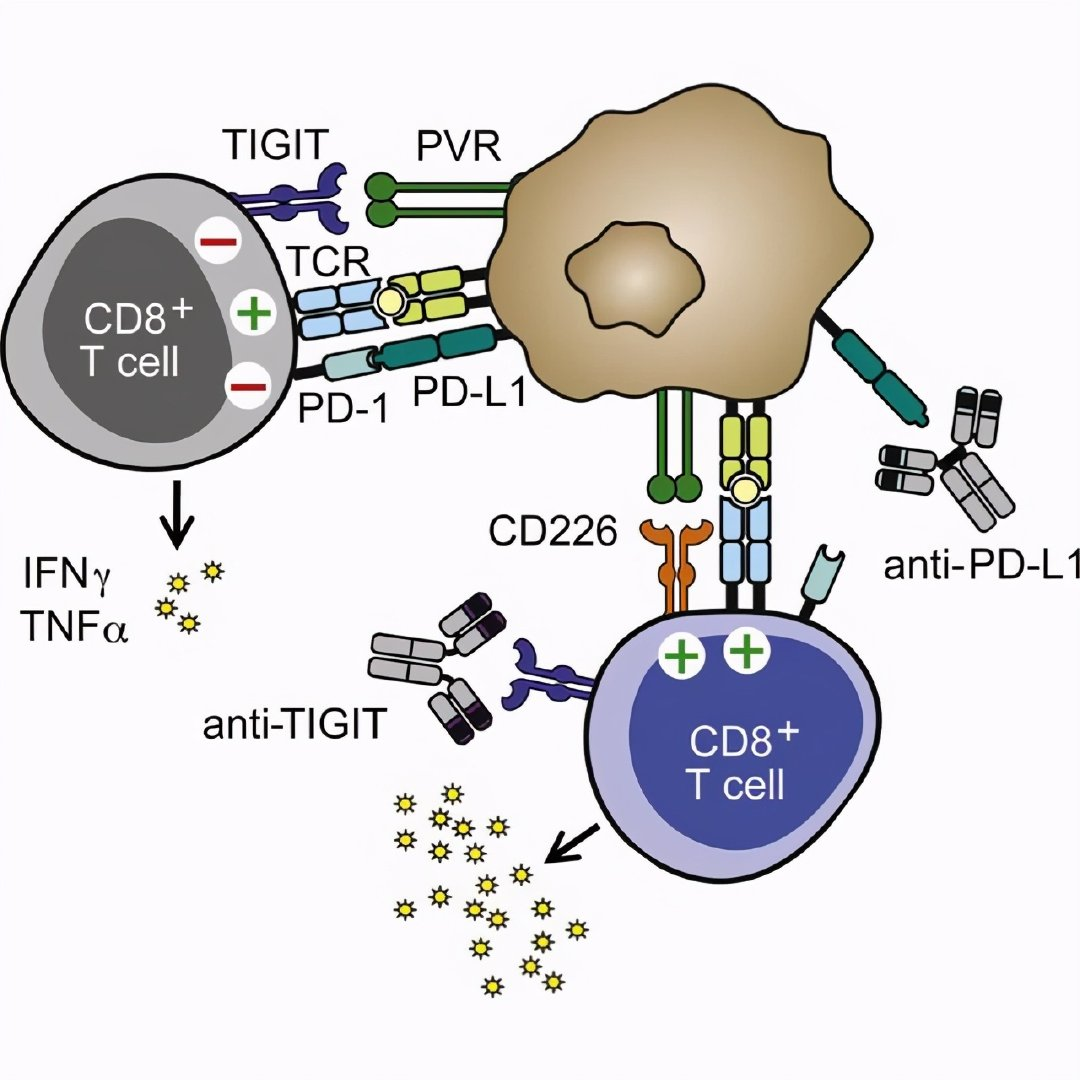 那么,同时阻断TIGIT和PD-L1,就有可能实现T细胞的再活化,同时增强自然杀伤(NK)细胞的抗肿瘤活性。
