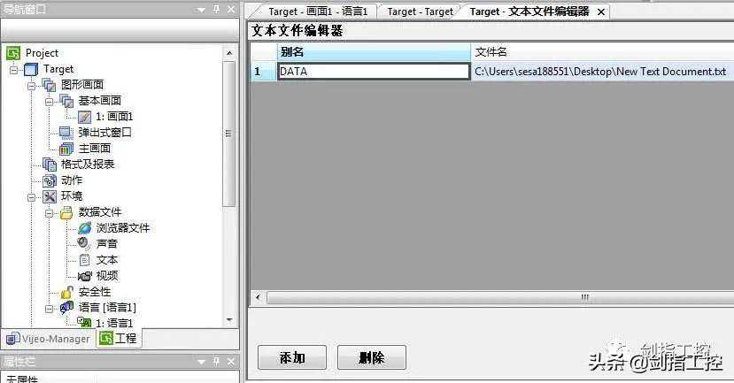 注意:此例中读取的文本文件的行数为20行,因此要注意创建的变量的数组大小与字符长度也要与之相对应,否则HMI运行时会有相应的错误信息提示