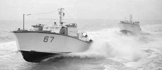 已经作为猎潜艇完工后的MGB65和MGB67正在执行巡逻任务,摄于1942年