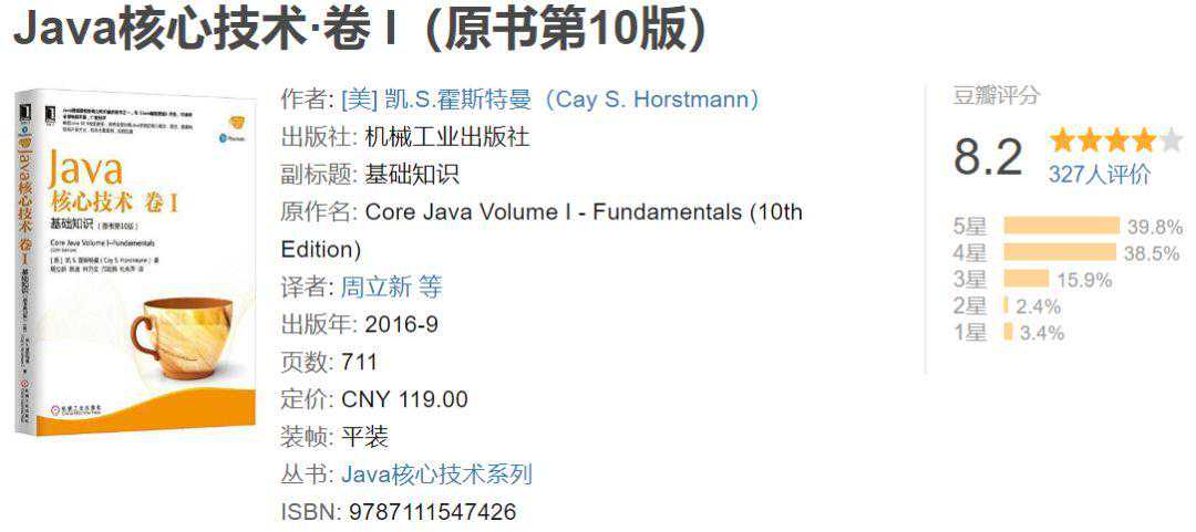 《Java核心技术》豆瓣评分8.2,学习Java的好书之一