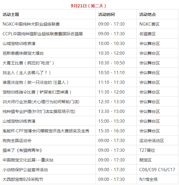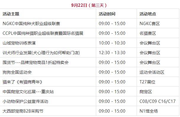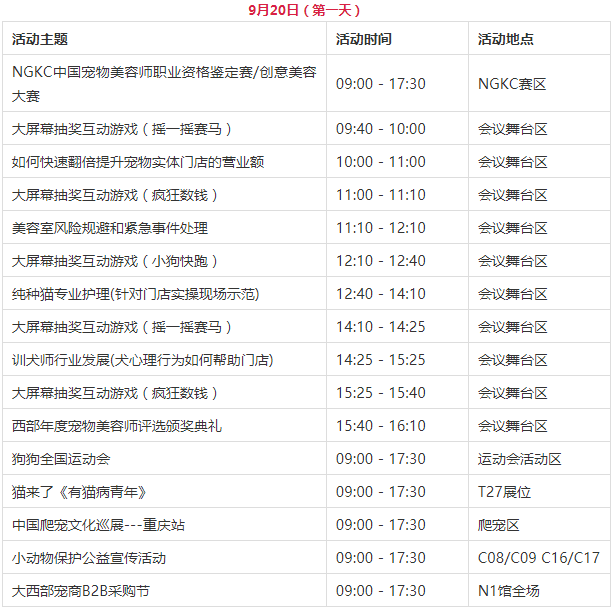 专业导师,现场授课,CPF国际宠博会·2019西部重庆展讲座活动时间表如下:日期