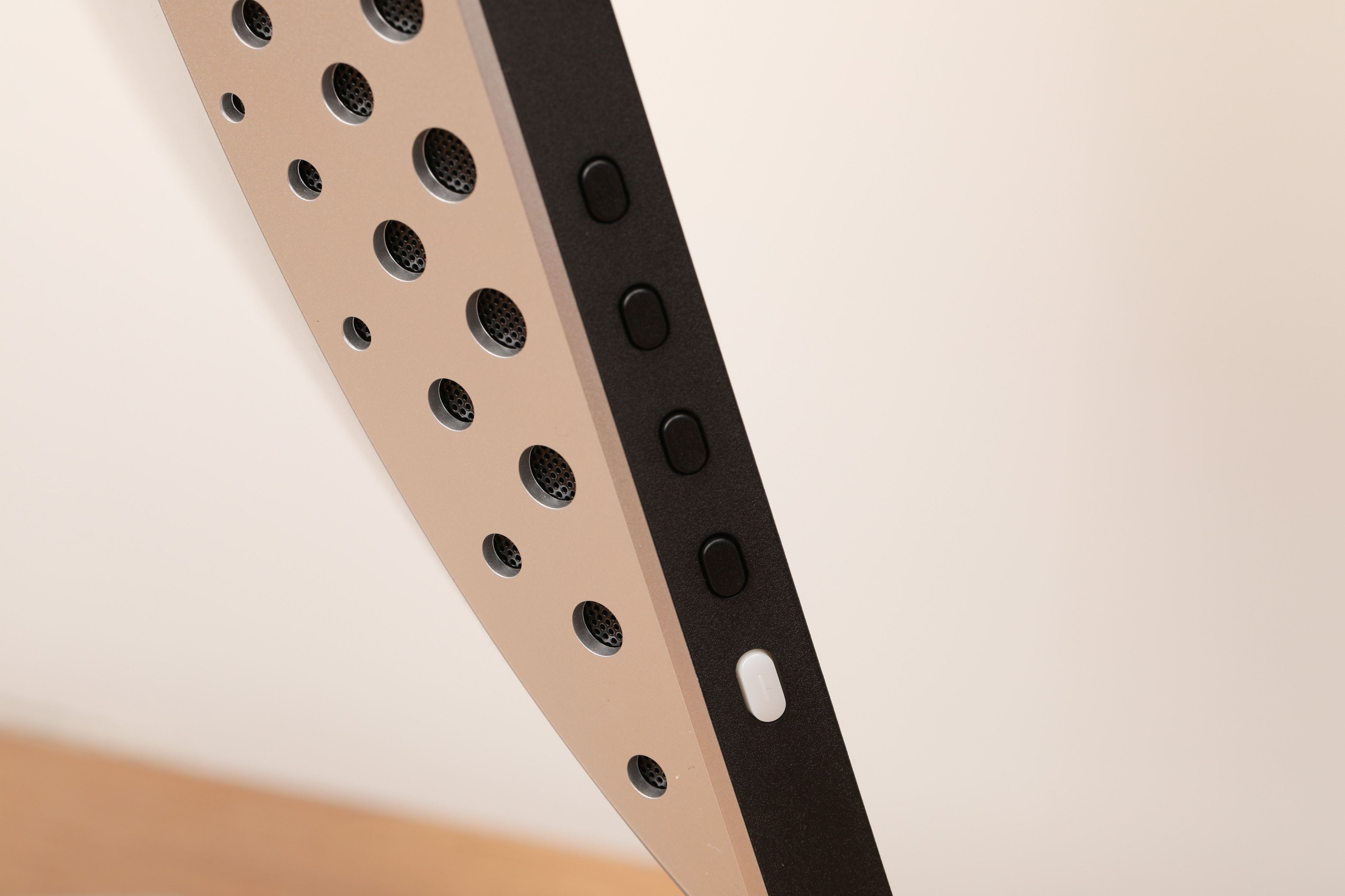 按键和接口设置跟传统的显示器没有太大的改变。所有的功能按键,集中在屏幕的右下侧,从左往右分别是菜单键/选择键、下选择键、上选择键、退出键以及电源键指示灯。