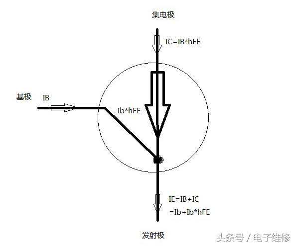 见上图,这些电流的大小如图中所示,对于hFE(或者叫β,是一样的),被称为共发射极电流放大系数,我们可以理解为是将基极电流的多少倍变成集电极电流的控制系数,和各端子的电流关系,图中标注很明确。
