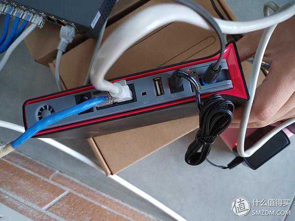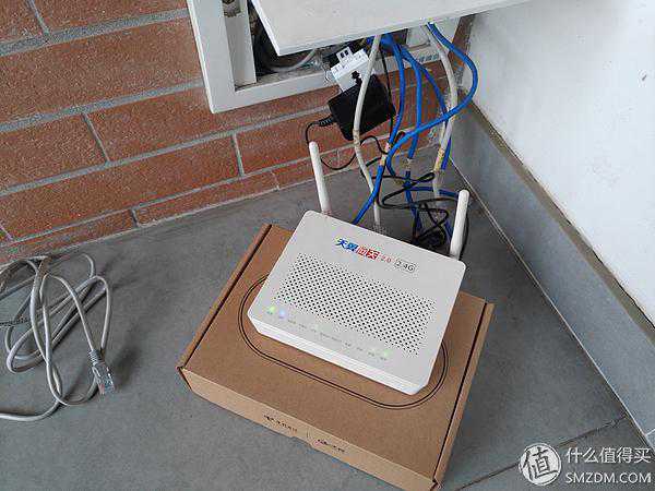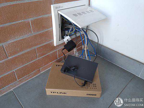 将千兆网口接到客厅沙发旁的网络面板,面板接无线路由器,这样就能将无线热点移到客厅中央。这样我就可以将原本由于没有光猫才购置的交换机给退掉,1是父母家没有台式机,两个卧室书桌下的网络接口几乎用不到,2是光猫+交换机两个设备放在入户门口还得加一个排插(如上图),而且又无法放进信息箱内,实在占地方又不美观。
