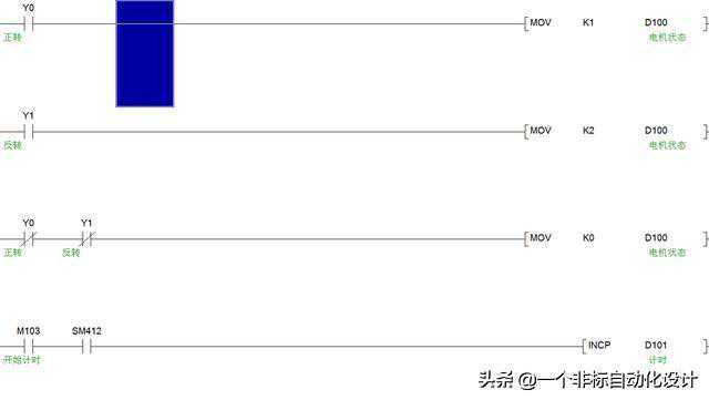 用D100的值表示电机的三个状态