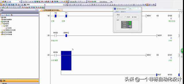 再建立M103当做计时开始信号,注意是取反的哦,取反就是点一下是1再点一下就0,再点又是1