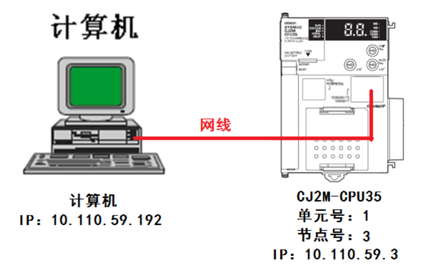 本案例设置CJ2M内置EIP口模块单元号为1,节点号为3。