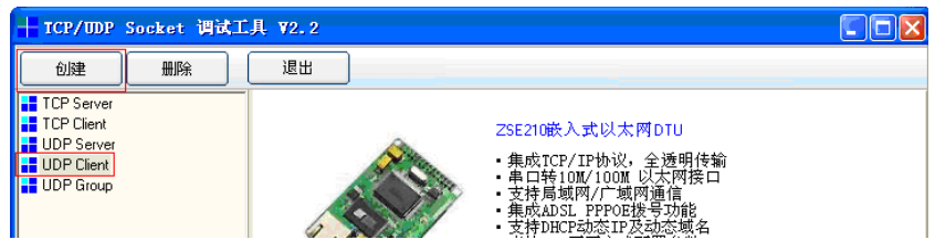 b.打开SocketTool软件,新建一个UDP客户端: