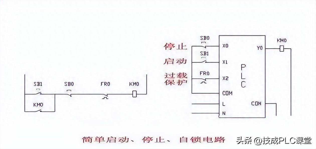 PLC上电后,X000、X002常开点就会闭合。即逻辑值为“1”Y0=(Y0+X001)×X000×X002只要按下启动按钮SB1后,X001的逻辑值为“1”,Y0逻辑值就为“1”。松开启动按钮SB1,X001的逻辑值为“0”但Y0逻辑值为“1”,Y0与X001是或的关系,保证了Y0逻辑值始终为“1”,即自锁。直至按下停止按钮或出现过载(FR0动作),Y0的逻辑值才变为“0”。