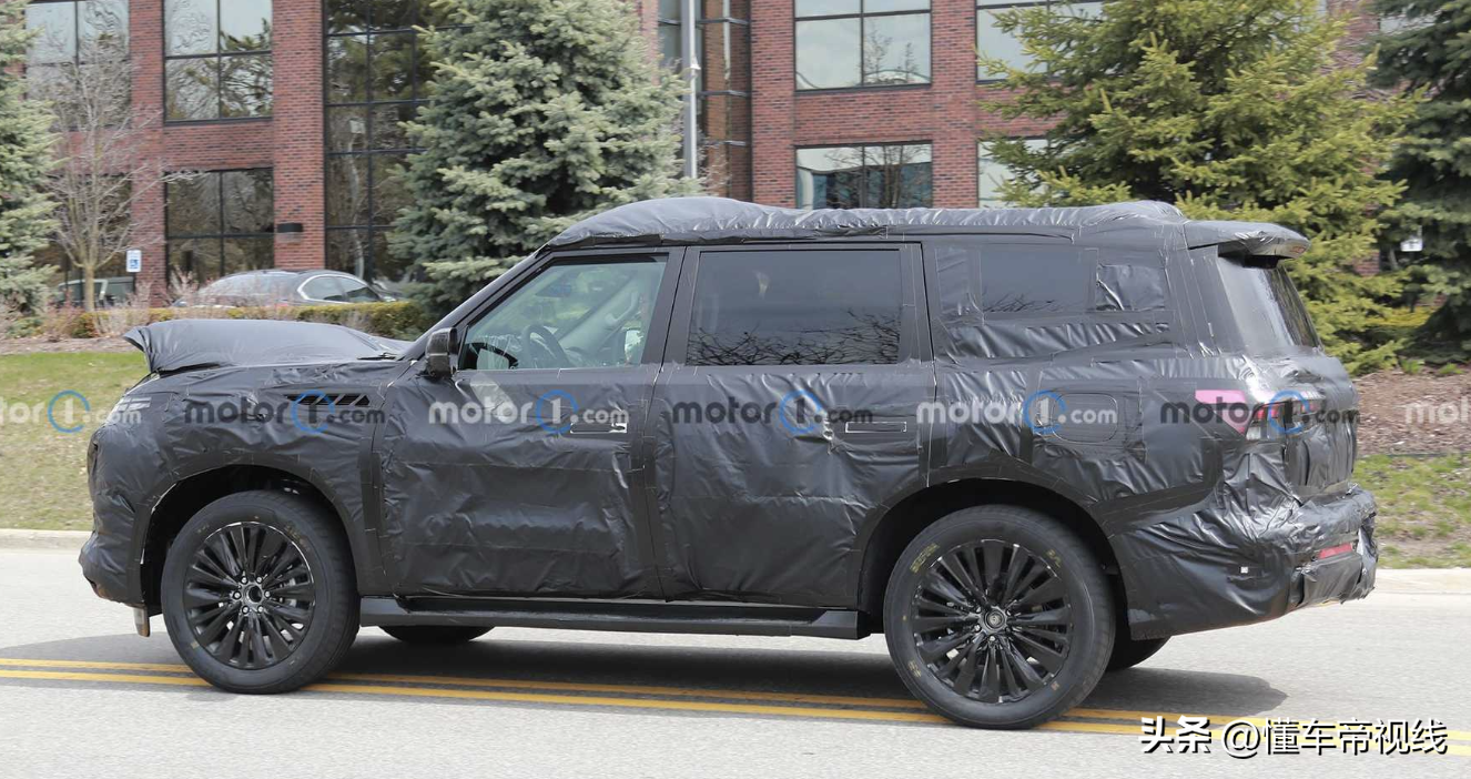 至于车身侧面,新一代英菲尼迪QX80轮廓基本延续了现款车型设计,不过C柱和D柱之间的侧车窗造型预计有所改变。值得注意的是,该车或采用隐藏式车门把手设计。
