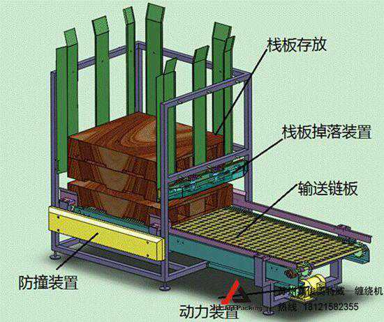 4.栈板输送至链板部分,由链板线输送至下一工位,工作完成。