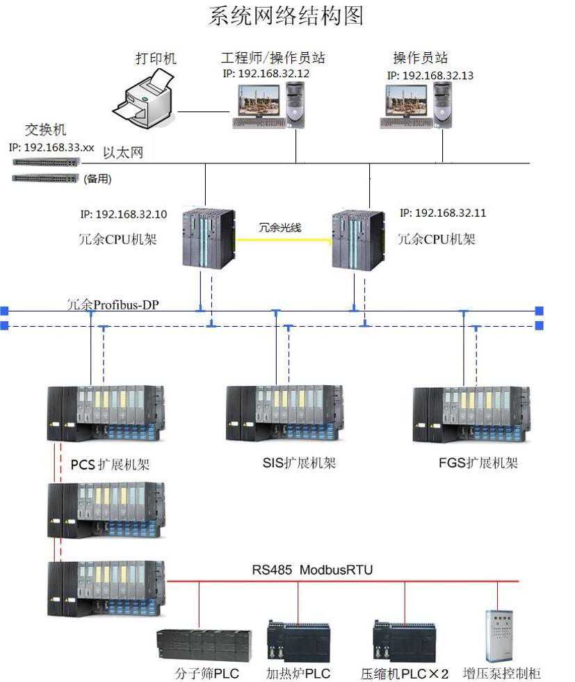 现场总线层:PROFIBUS-DP/PA,Modbus-RTU/TCP,FF总线,是联系控制站(AS)与现场站或设备的纽带