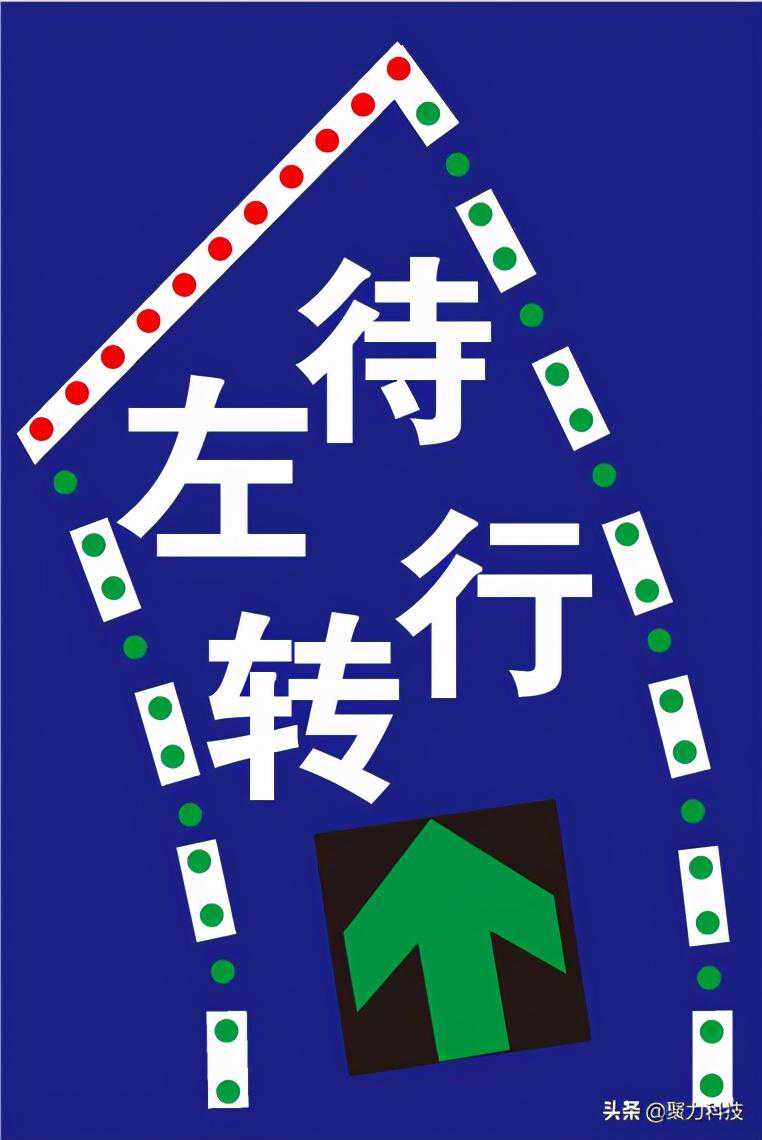2、工艺说明:标志版面由LED发光管组成停车线、边缘线、“左转待行”文字;由显示屏动态(P10)显示红、黄、绿三色动态箭头,通过控制模块调取信号灯灯色状态,在标志版面形成动态三种状态,动态引导待转车流通行权限。