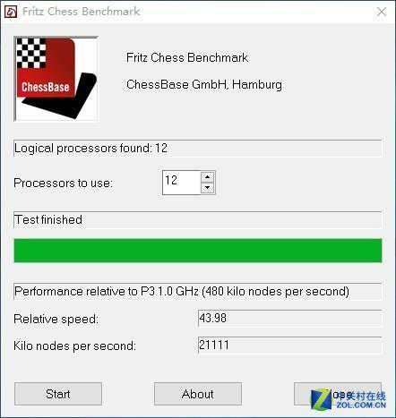 下面我们借助FritzChessBenchmark这款软件来测试一下多线程大规模科学运算能力。这款软件最多支持十六线程同时运算。