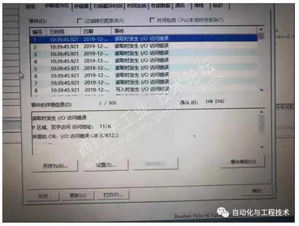 我们将记录上限调整为最大值(500条),但是都是I/O访问错误。而且出错的地址并不相同。查看程序,I/O访问错误组织块OB122已存在,因此可以确定PLC的停止与此无关。但是,出错时的故障信息都被I/O访问错误给顶掉了,因此我们需要先解决I/O访问错误的问题。